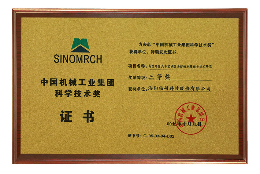在機械工業(yè)科學技術進步中做出突出貢獻的單位三等獎