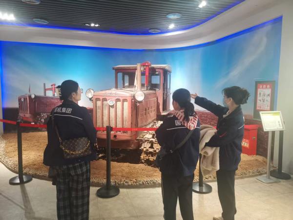 東方紅農(nóng)耕博物館是國內首座以現(xiàn)代農(nóng)耕為主題的博物館,館內收藏了眾多珍貴的農(nóng)耕文物和現(xiàn)代化農(nóng)業(yè)機械,生動展現(xiàn)了中國農(nóng)業(yè)從傳統(tǒng)到現(xiàn)代的演變歷程。從中國第一代履帶拖拉機、第一代水旱兩用輪式拖拉機,到毛澤東主席對一拖的重要批示、周恩來總理對一拖領導的任命書等珍貴文物,這些展品不僅見證了中國農(nóng)業(yè)機械化的發(fā)展歷程,更彰顯了中國一拖在中國農(nóng)業(yè)現(xiàn)代化進程中的重要貢獻。從簡陋的石器農(nóng)具到精密的現(xiàn)代化農(nóng)機,從“面朝黃土背朝天”的艱辛勞作到“智慧農(nóng)業(yè)”的精準高效,大家深刻感受到了中國農(nóng)業(yè)的滄桑巨變和科技的力量。