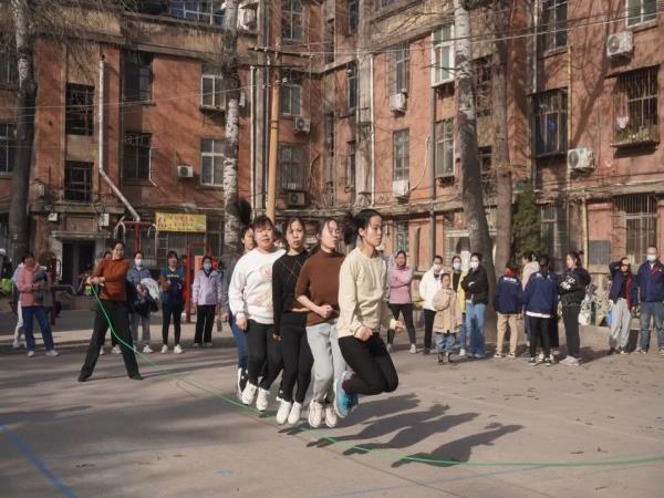 “一、二、三、四……”在氣勢如虹的計數聲中,隊員們通力合作、默契配合,搖繩的隊員手腕翻飛,跳繩的隊員疾如飛燕。絆倒了也不言放棄,迅速調整步伐,重新投入比賽,繩子擦過地面發出清脆的“噠噠”聲,伴隨著不絕于耳的加油聲、歡呼聲,把現場氣氛一次次推向高潮。