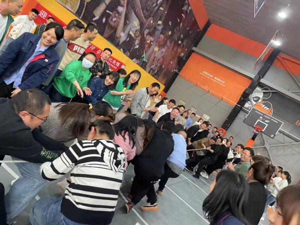 本次趣味運動會共設(shè)置了團隊跳繩接力、團隊跳大繩、接力賽、拔河、眾志成城等趣味比賽項目,事業(yè)部總經(jīng)理楊虎及副總經(jīng)理孫東帶領(lǐng)職工分為四個隊伍進行比賽。