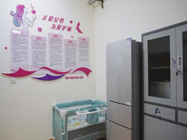 走進女職工關愛室,整體裝飾風格簡潔明亮、溫馨淡雅,室內不僅配備有嬰兒床、冰箱、空調、沙發桌椅、儲物柜等設施,還結合女職工需求,貼心配備了保健用品、針線盒、健康知識讀物等物品。為女職工“五期”關愛提供便利的同時,也為女職工溝通交流、舒緩壓力等提供了獨立的空間。